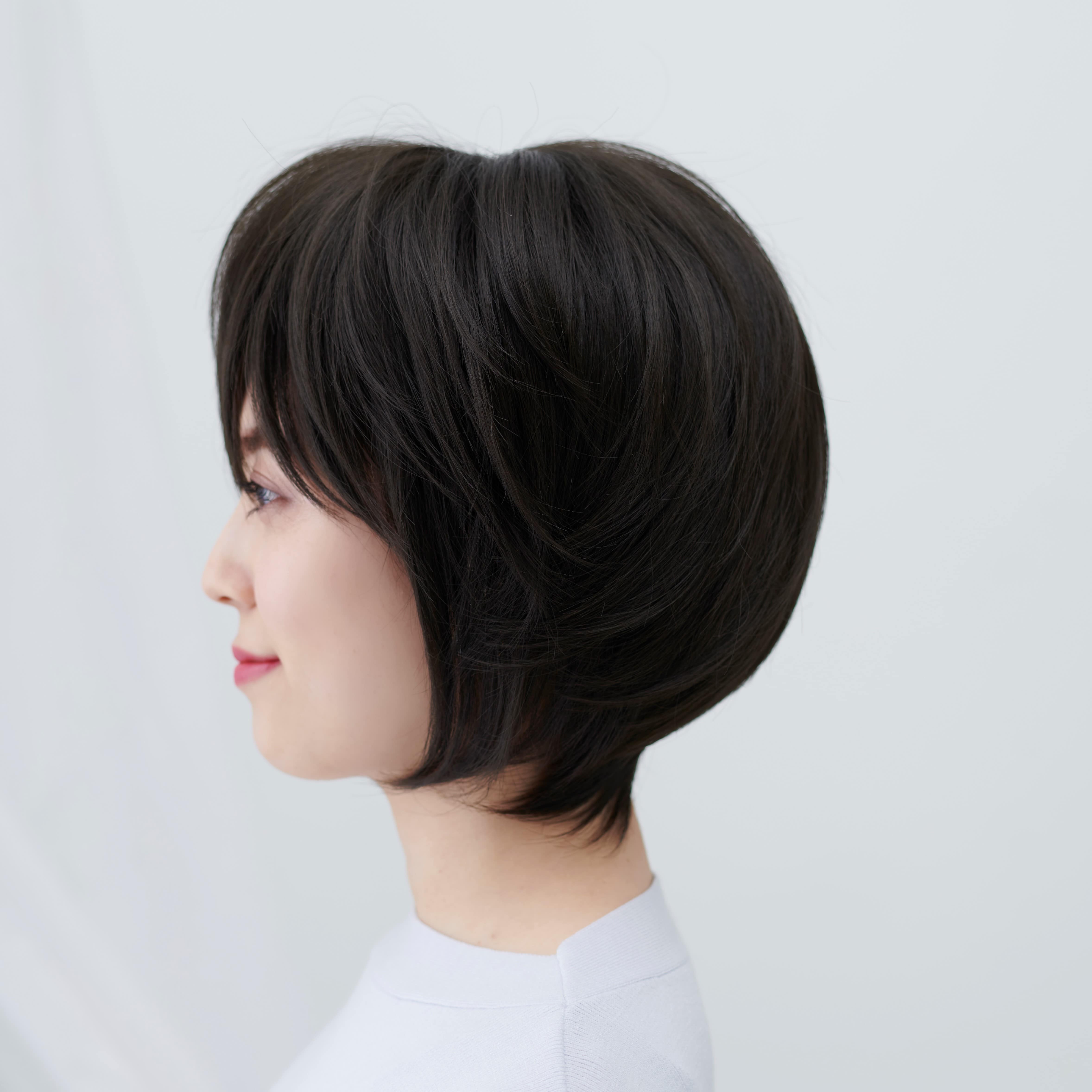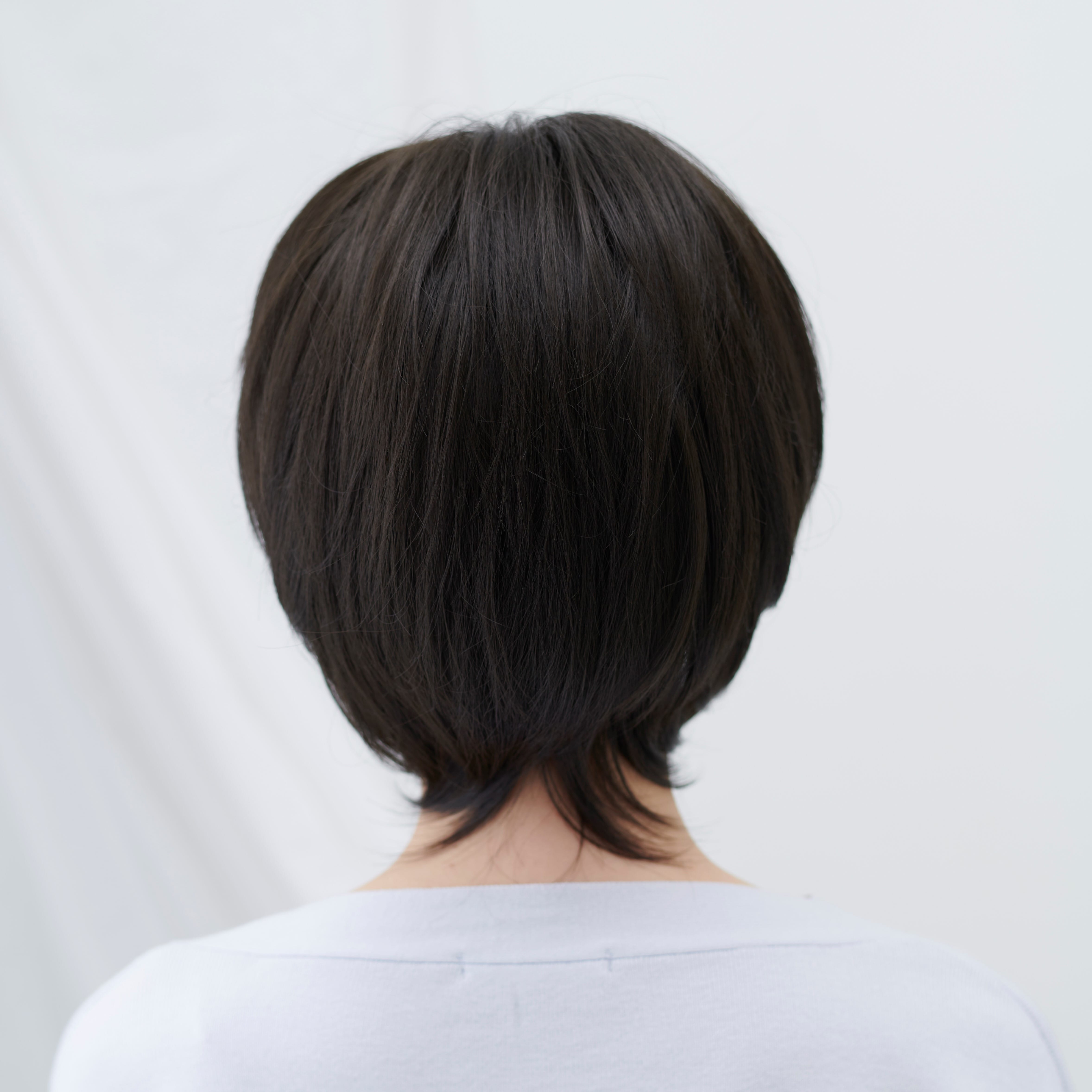 タイプ フルウィッグ ブランド NAVANA ヘア素材 ポリエステル カラー ナチュラルアッシュブラック_6 スタイル ナチュラルショート 製法 フロント手植え 毛長 前髪:18cm、後ろ:34cm