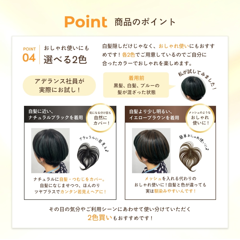 白髪隠しに特化した手のひらサイズの部分ウィッグです。