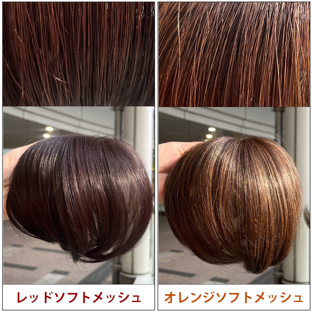 レッドソフトメッシュ チョコレートブラウンのベースにレッドブラウンのメッシュ。暗めトーンの茶髪の方にもマッチするカラー。 オレンジソフトメッシュ ライトブラウンのベースにオレンジブラウンのメッシュ。 なじみ感がよく、さりげないアクセントになるカラー。 ナチュラルブラウン 自然なカラーでお試しになりたい方におすすめ。自髪に馴染ませてメッシュ風にアレンジも◎ ナチュラルな質感にこだわったプレミアムウィッグ
