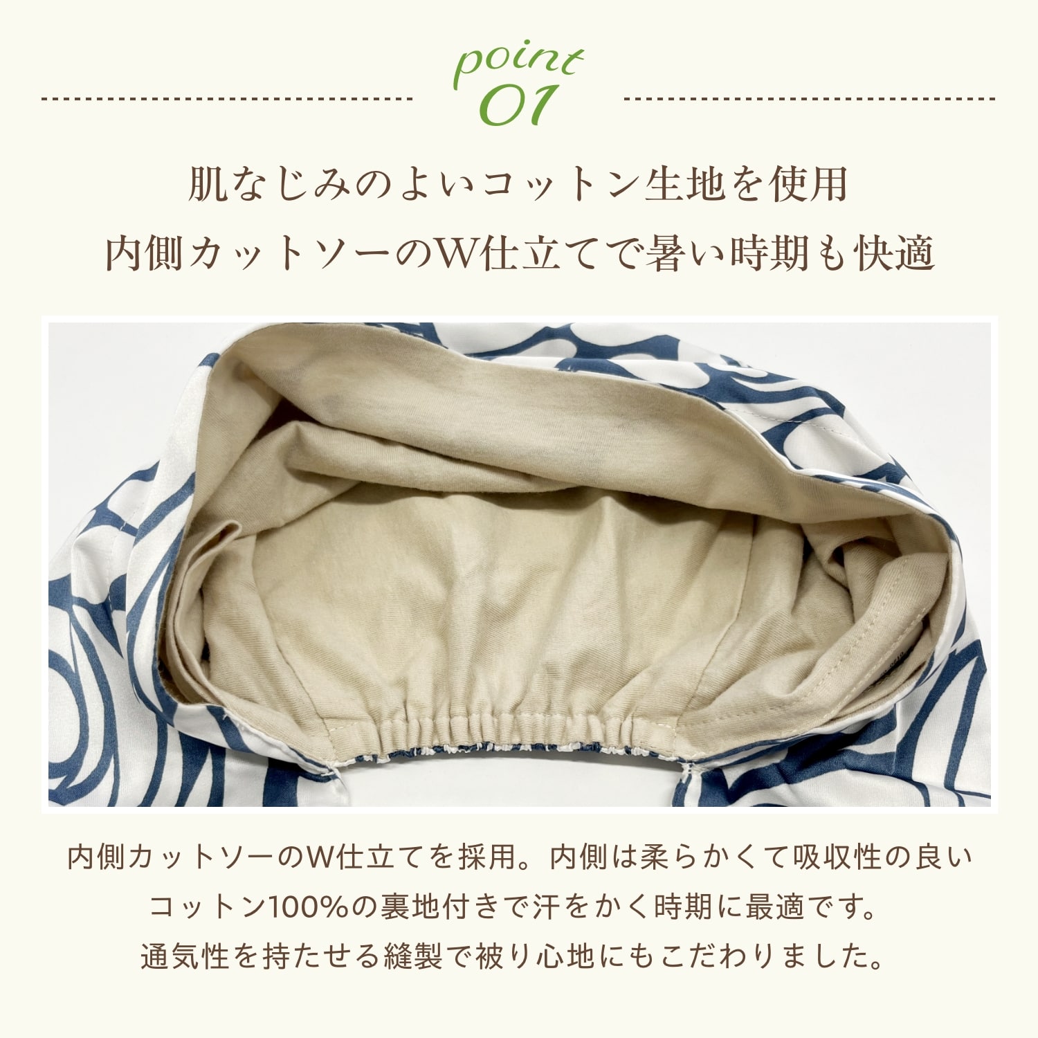 ファッション性をプラスしたスカーフタイプのケア帽子