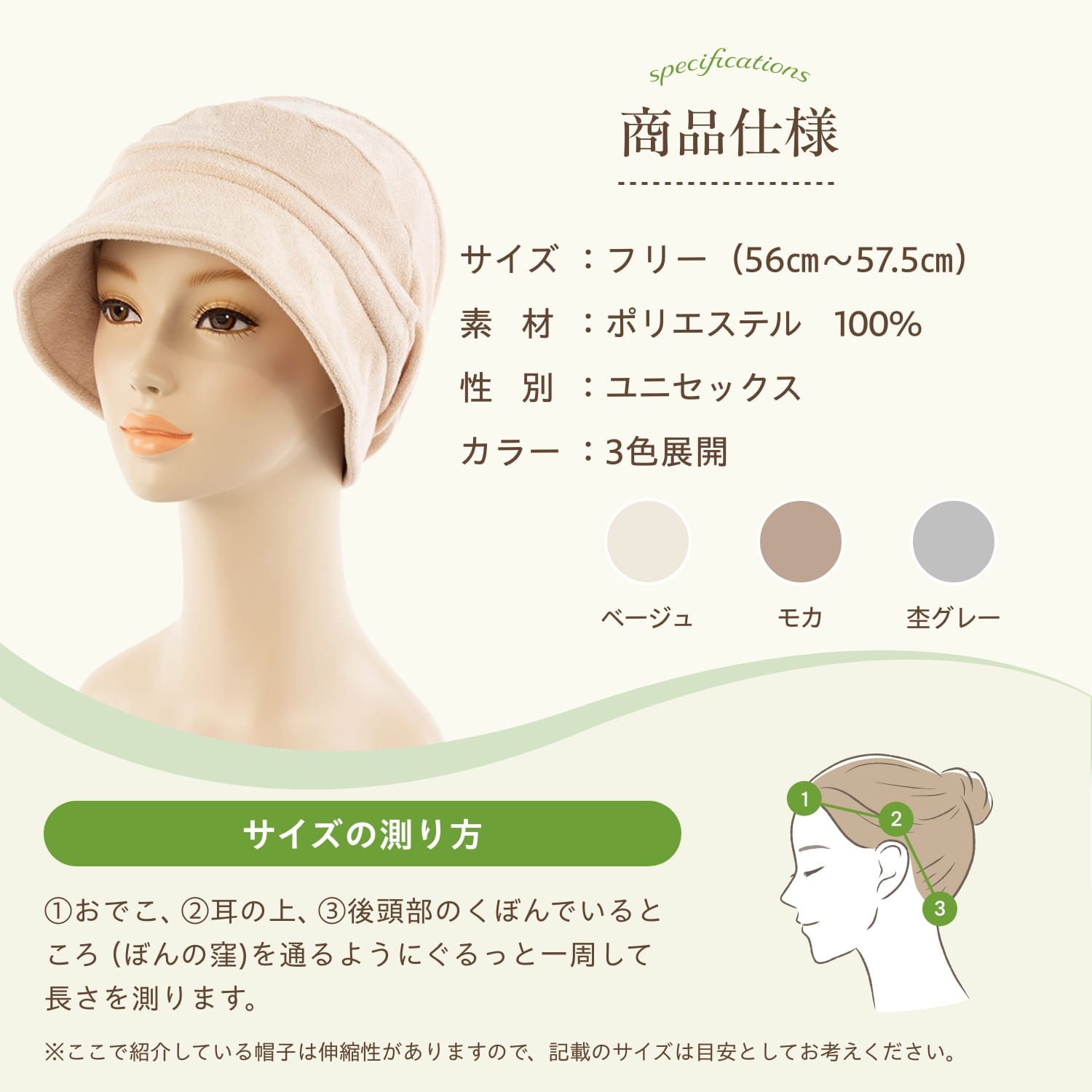 医療用(脱毛時用)帽子・つば広パイルコンパクトハット(モカ)| 7111