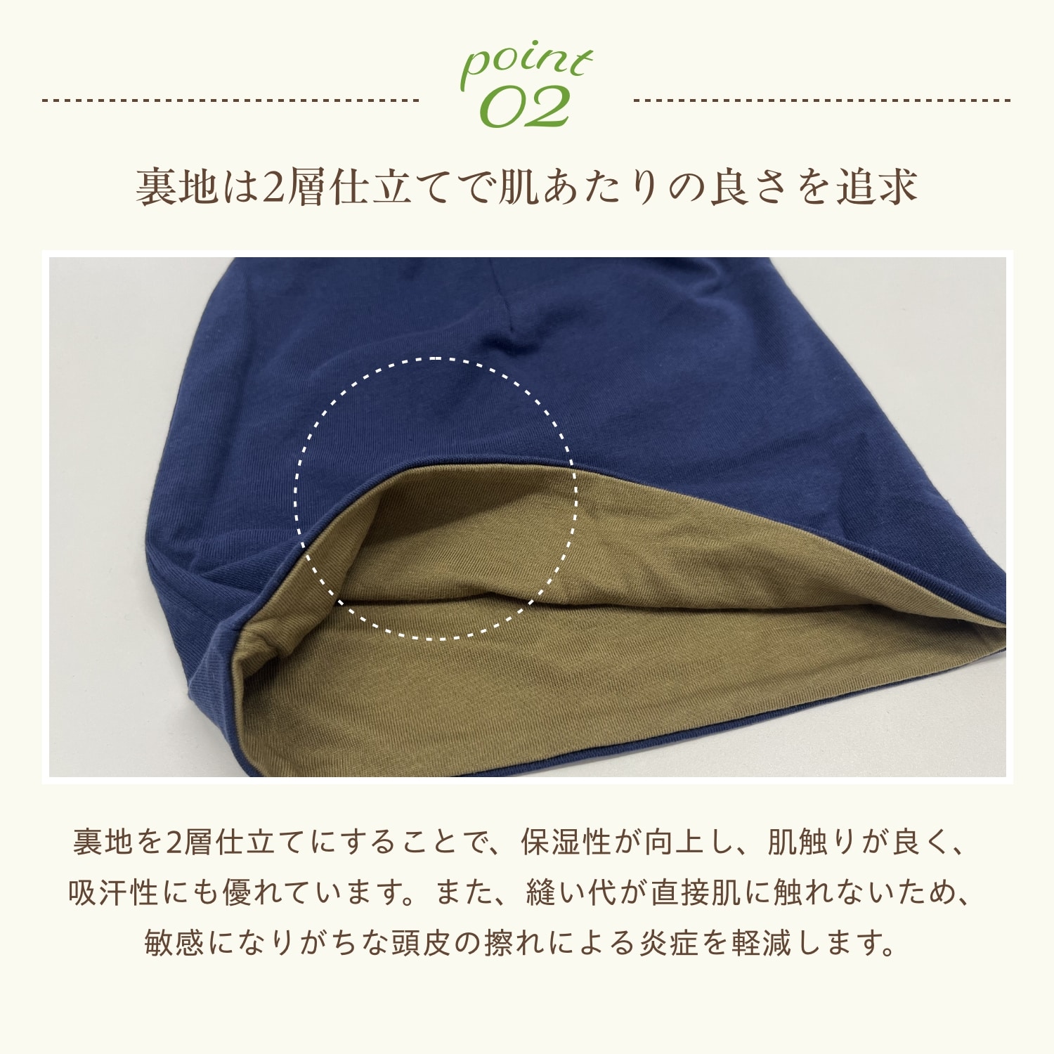 頭皮が敏感になっていますので、しめつけず肌触りのよい素材、肌に優しく、安心してお使いいただける商品をお選びください