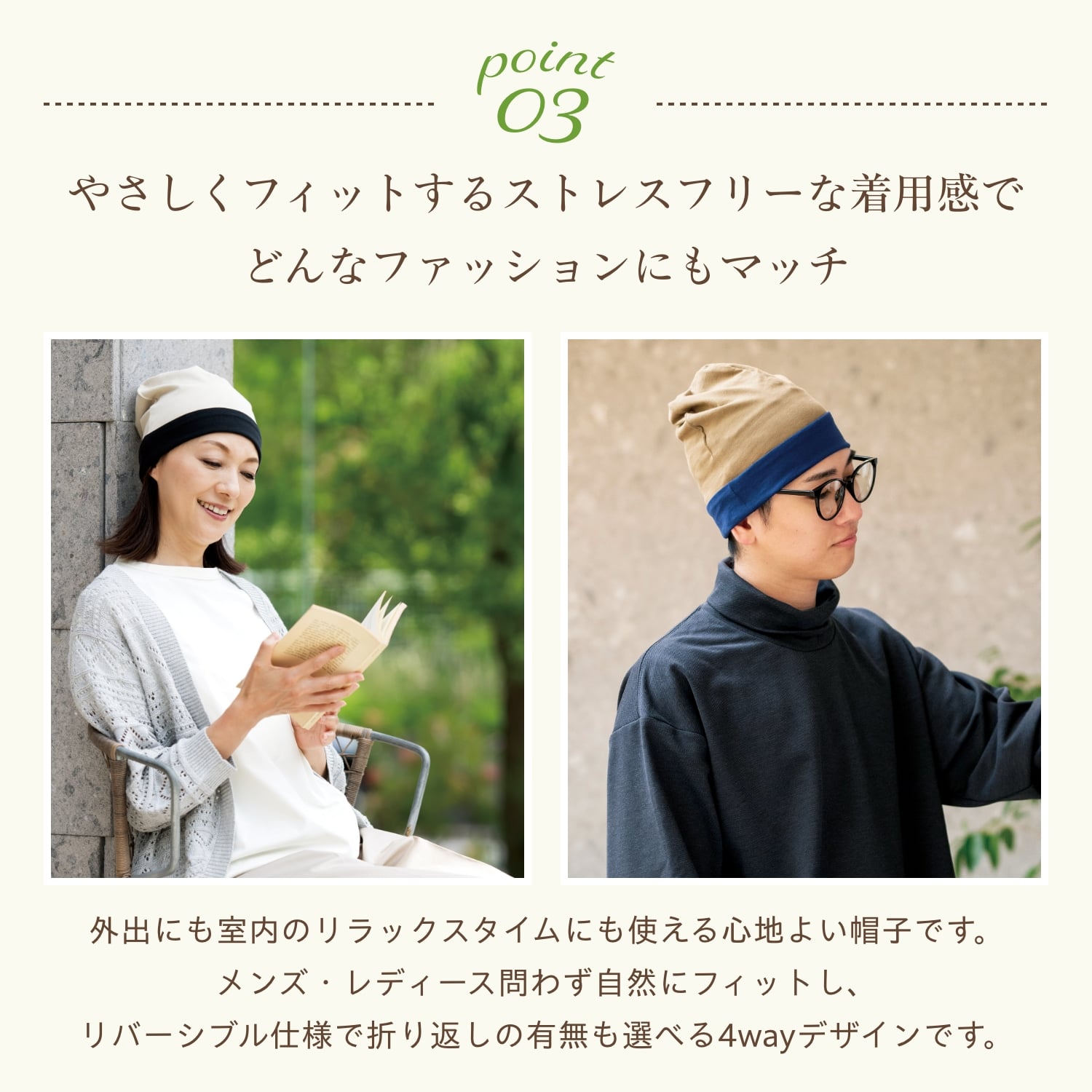 リバーシブルタイプのシンプルなケア帽子