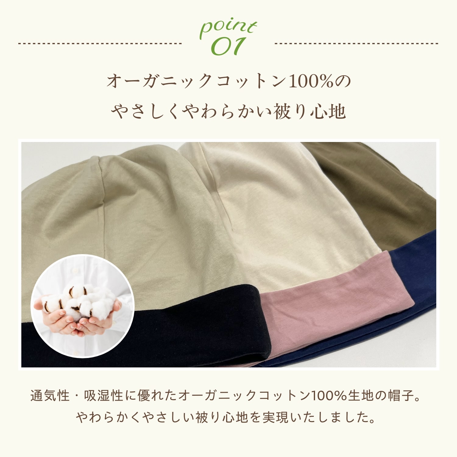 通気性・吸湿性に優れたオーガニックコットン100%