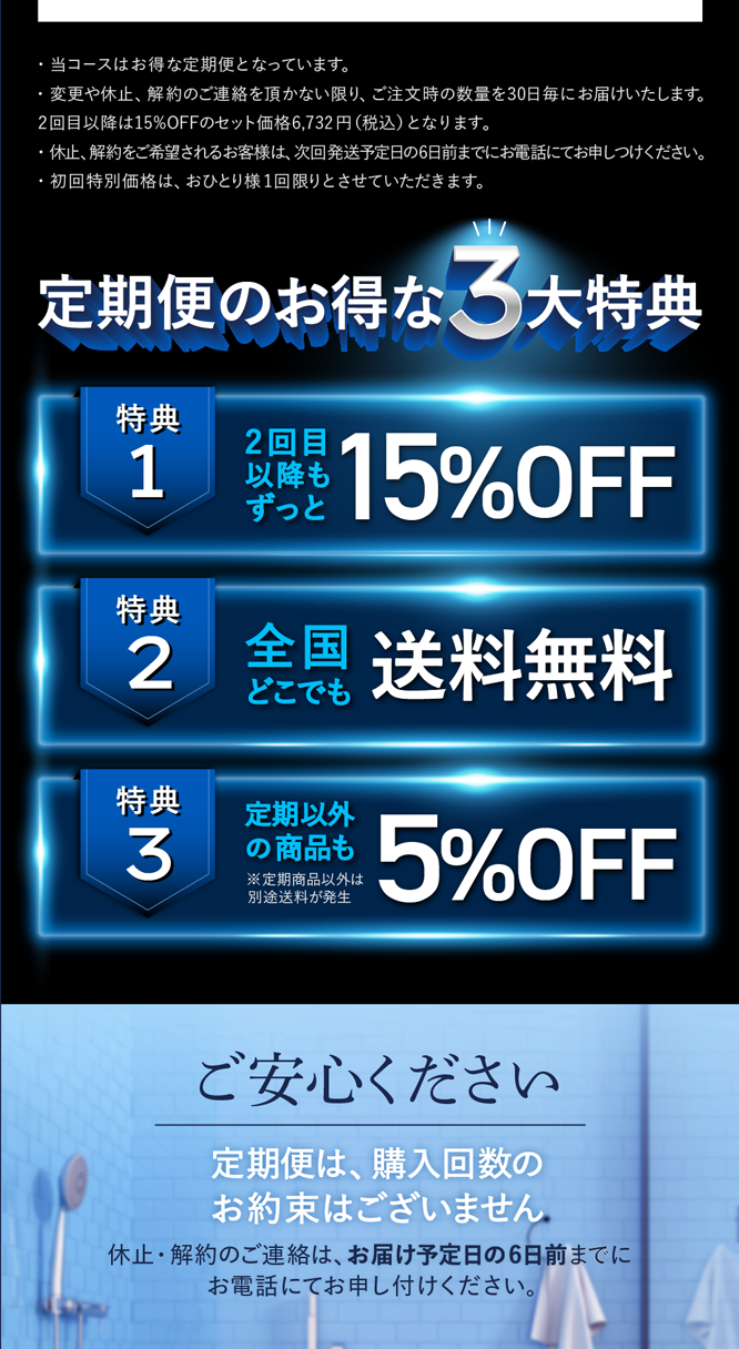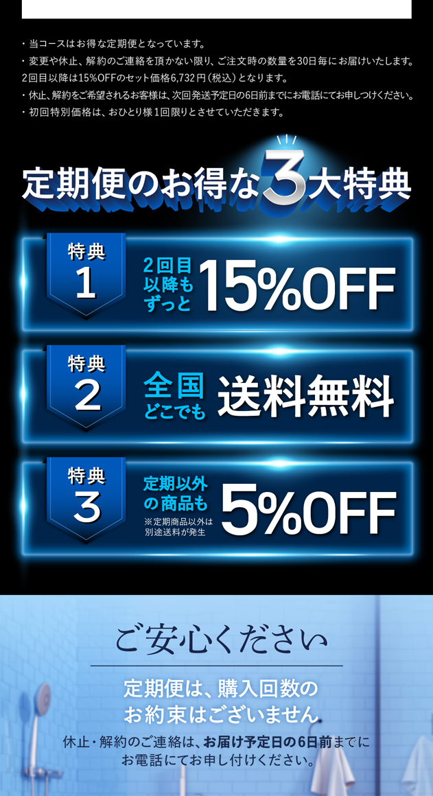 ※定期コース解約につきましては、お電話のみでの受付になっておりますので予めご了承ください。