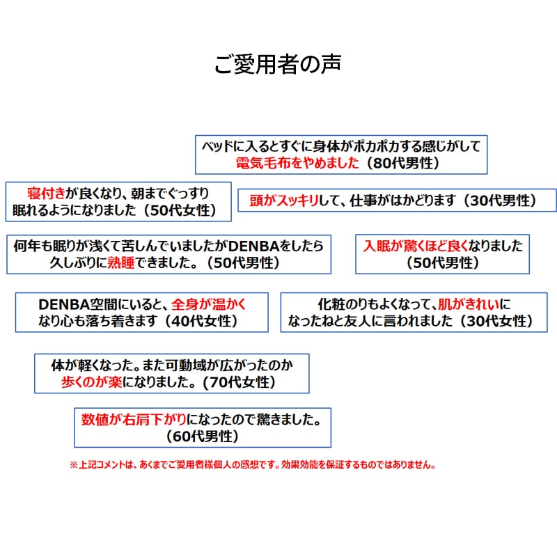 多くの体験者は、DENBA Health Charge Evoを使用した直後から、体の奥深くまで温かいエネルギーが行き渡るのを実感しています。