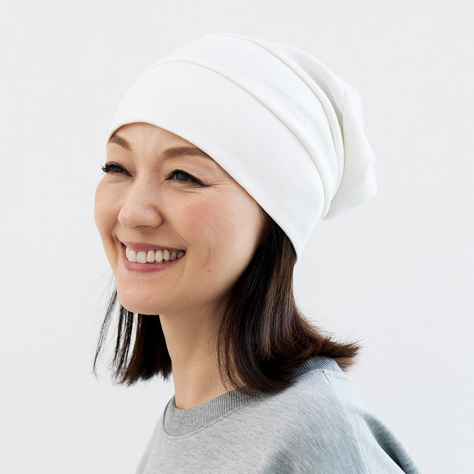 ゆったりとかぶれるワッフル素材のケア帽子
