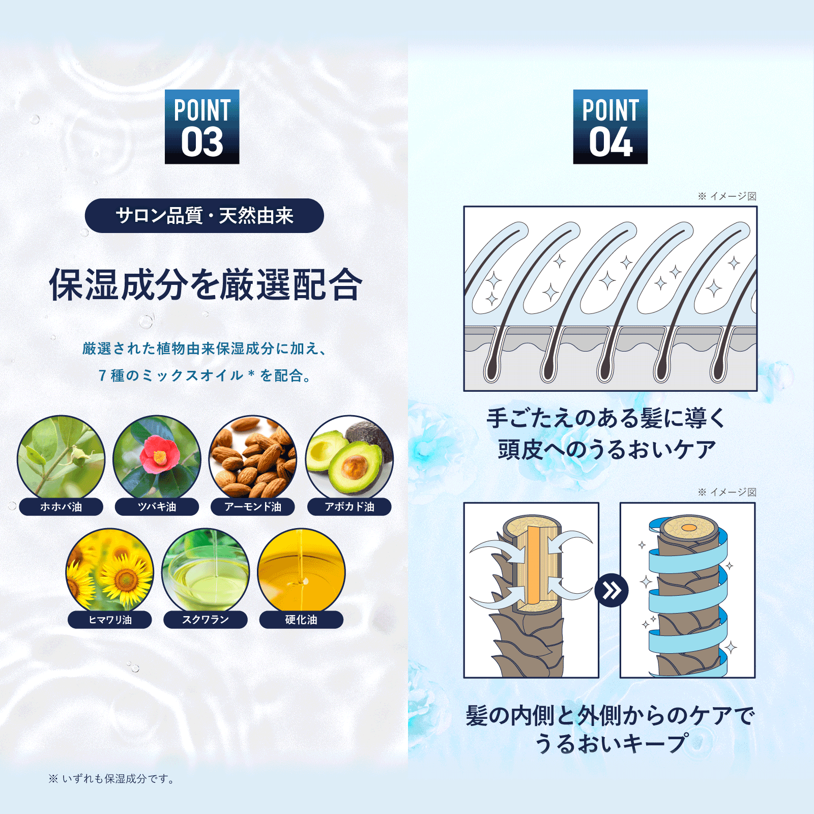 髪と親和性の高い植物由来の保湿成分とオイルで潤いをチャージ